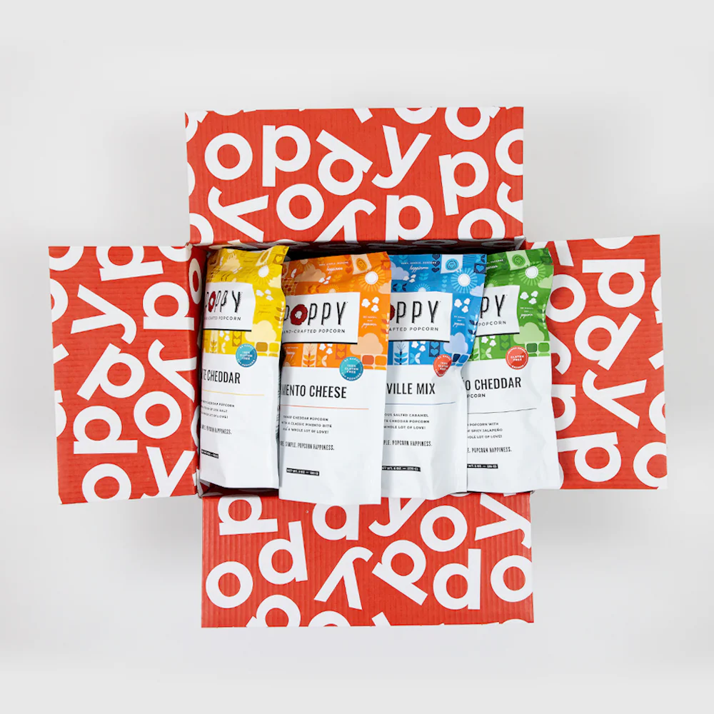 Something for everyone! This colorful set serves up 12 market bags with 2 each of Salted Caramel, Cinnamon Bourbon Pecan, Jalapeño Cheddar, Dill Pickle, Pimento Cheese, and Asheville Mix. Stock the office snack bar, surprise your favorite clients, or make your next team meeting a little more fun. Packed with white crinkle in a cheerful gift box, it’s an easy (and delicious) way to share a little joy.